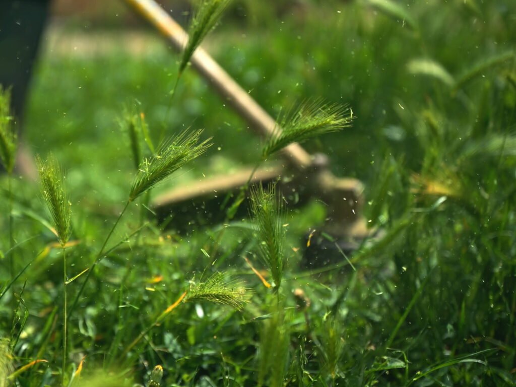 We maintain our mower blades to ensure a clean cut that promotes grass health rather than tearing the blades, which can cause brown tips.